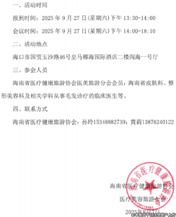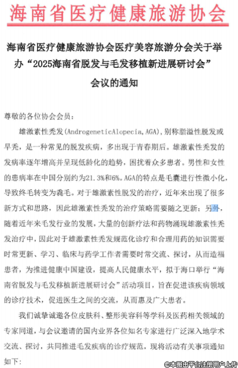海南省醫(yī)療健康旅游協(xié)會醫(yī)療美容旅游分會關(guān)于舉辦“2025海南省脫發(fā)與毛發(fā)移植新進展研討會在”會議的通知