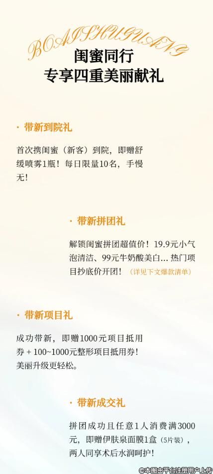 寶子們!變美這件事兒,怎么能少了閨蜜相伴?深圳博愛曙光帶著超燃福利來啦!“「友」福同享”活動閃亮登場,快喊上你的神仙閨蜜一起組團(tuán),讓顏值直接開掛,現(xiàn)在限時(shí)拼團(tuán),變美項(xiàng)目低至19.9元,沖就完事兒!