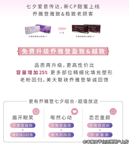 七夕喬雅登家族再添新CP,是心動?。∶赓M升級體驗。品質再升級,更高性價比容量增加25%更多部位精細化填充塑形老粉回歸,大連美天聯(lián)袂喬雅登摯誠回饋。