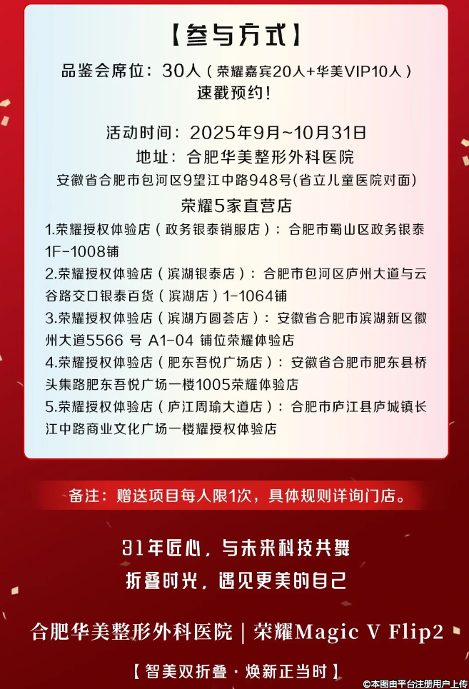 華美31年醫(yī)美積淀,雕琢外在精致;榮耀Magic V Flip2以旗艦影像,記錄蛻變后的每一面光彩??萍寂c匠心共舞,定義“美”的雙重維度。