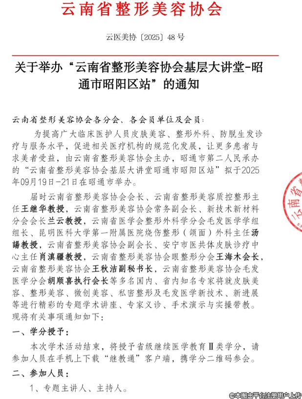 關(guān)于舉辦“云南省整形美容協(xié)會基層大講堂-昭通市昭陽區(qū)站”的通知