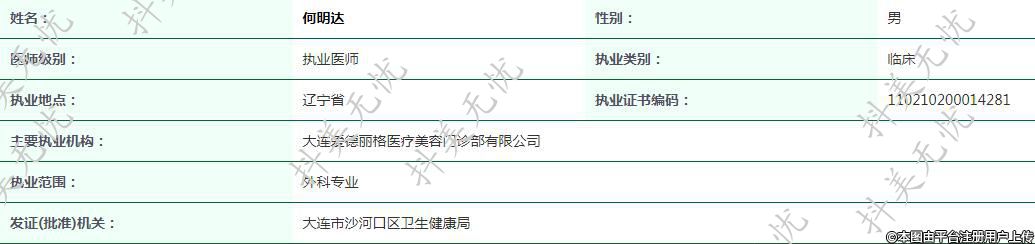 主要執(zhí)業(yè)機構(gòu):大連愛德麗格醫(yī)療美容門診部有限公司
