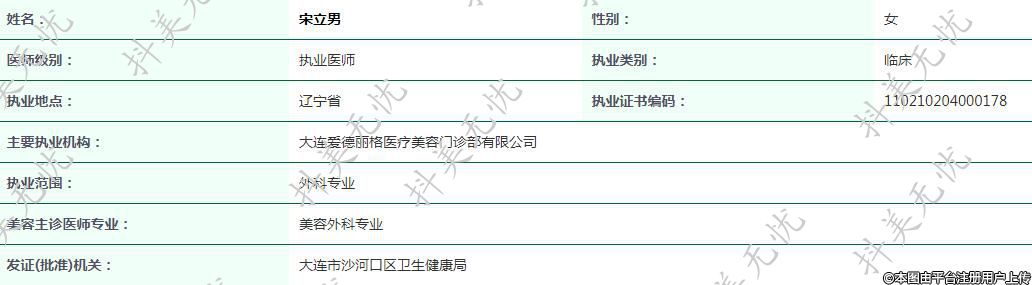 主要執(zhí)業(yè)機(jī)構(gòu):大連愛德麗格醫(yī)療美容門診部有限公司