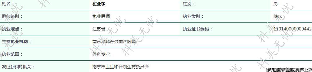 主要執(zhí)業(yè)機(jī)構(gòu):南京華韓奇致美容醫(yī)院
