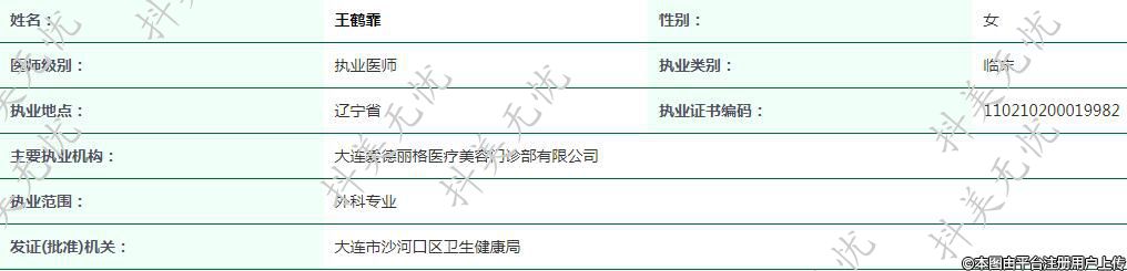 主要執(zhí)業(yè)機(jī)構(gòu):大連愛德麗格醫(yī)療美容門診部有限公司