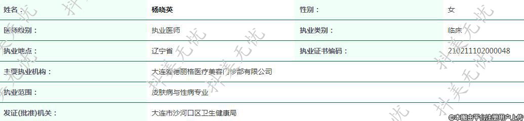 主要執(zhí)業(yè)機(jī)構(gòu):大連愛德麗格醫(yī)療美容門診部有限公司