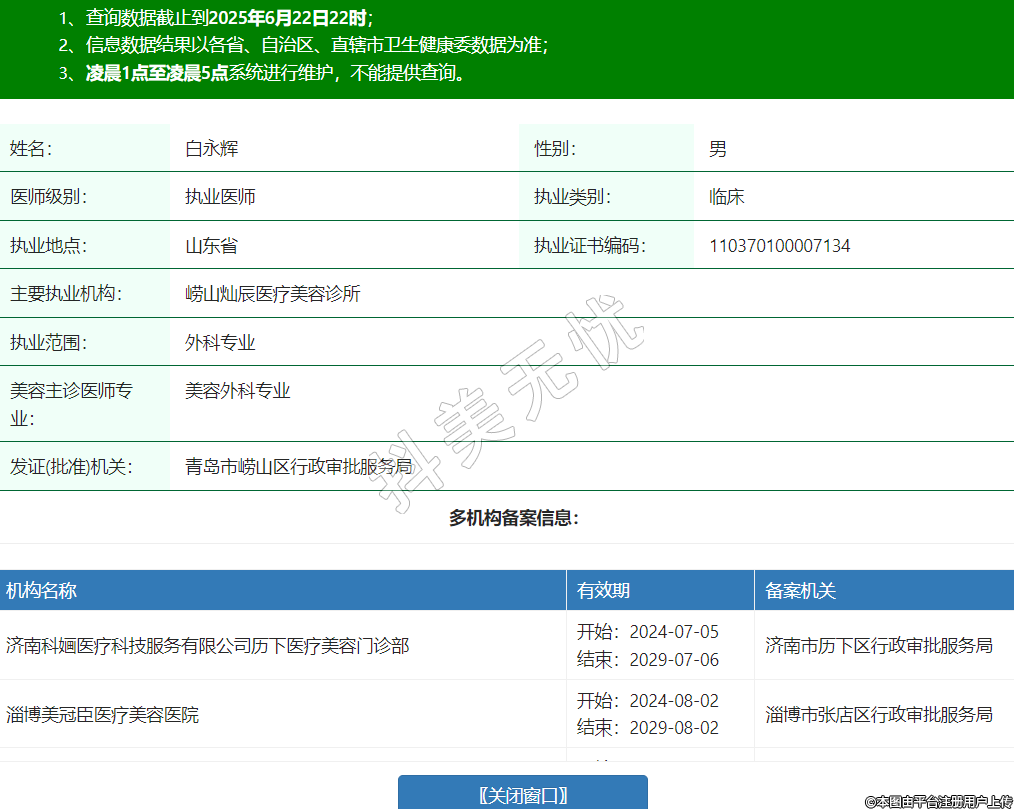 機構(gòu)名稱 有效期 備案機關 濟南科婳醫(yī)療科技服務有限公司歷下醫(yī)療美容門診部 開始:2024-07-05結(jié)束:2029-07-06濟南市歷下區(qū)行政審批服務局 淄博美冠臣醫(yī)療美容醫(yī)院 開始:2024-08-02結(jié)束:2029-08-02淄博市張店區(qū)行政審批服務局 華美創(chuàng)和醫(yī)療美容(濟南)有限公司華美創(chuàng)和醫(yī)療美容門診部 開始:2024-08-05結(jié)束:2029-08-06濟南市市中區(qū)衛(wèi)生健康局 -