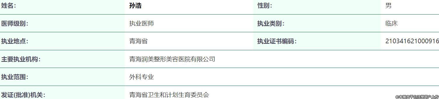 主要執(zhí)業(yè)機(jī)構(gòu):青海潤美整形美容醫(yī)院有限公司