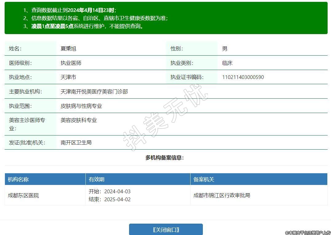 主要執(zhí)業(yè)機(jī)構(gòu):天津南開(kāi)悅美醫(yī)療美容門(mén)診部