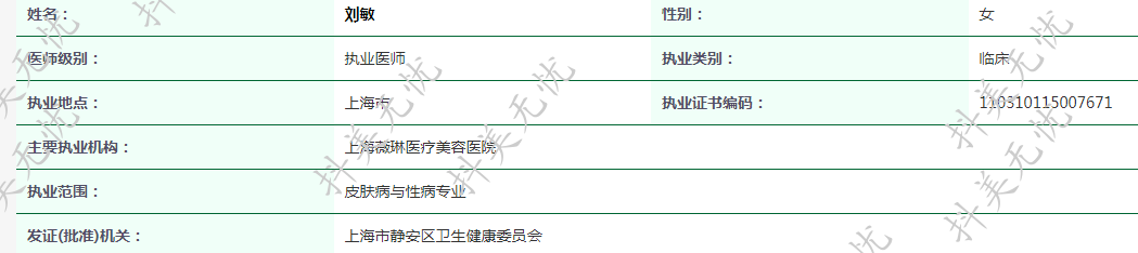 主要執(zhí)業(yè)機構(gòu):上海薇琳醫(yī)療美容醫(yī)院
