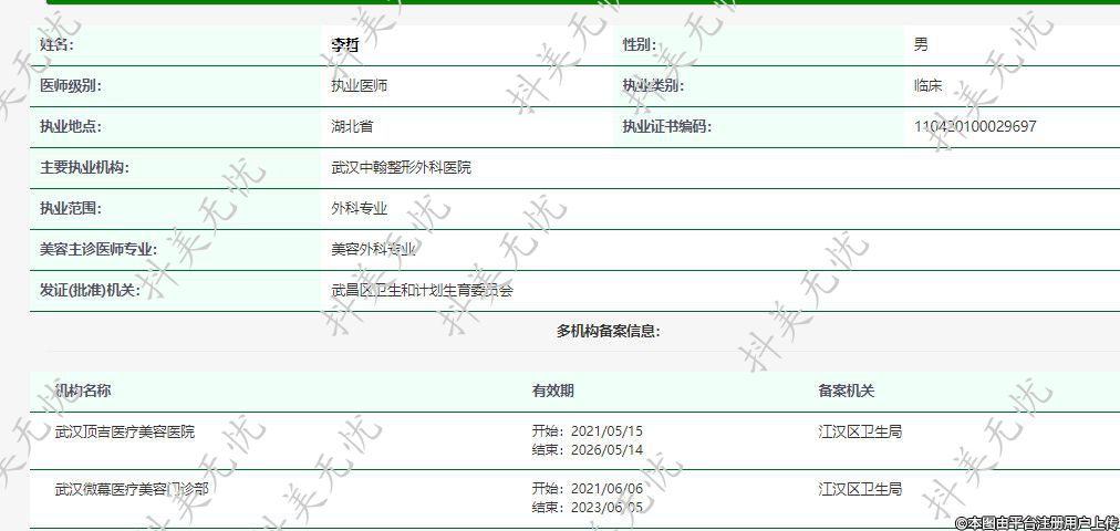 主要執(zhí)業(yè)機(jī)構(gòu):武漢中翰整形外科醫(yī)院