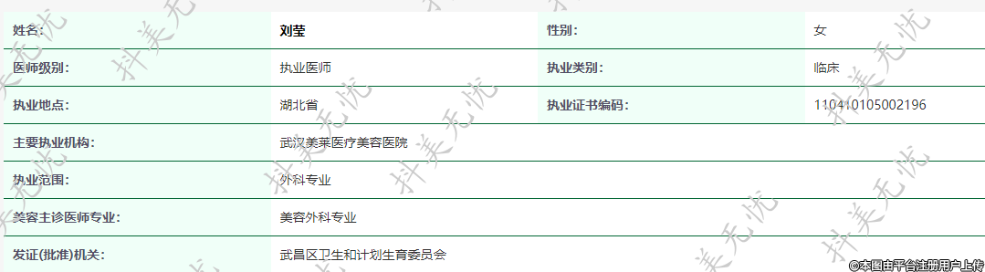 主要執(zhí)業(yè)機構:武漢美萊醫(yī)療美容醫(yī)院