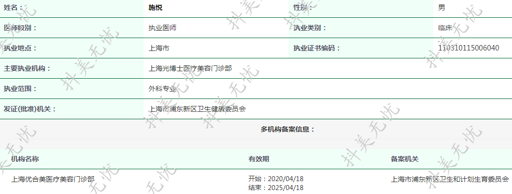 主要執(zhí)業(yè)機(jī)構(gòu):上海光博士醫(yī)療美容門診部