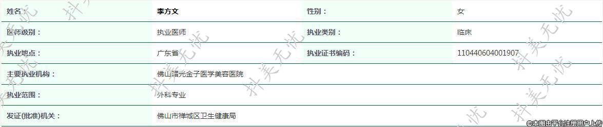 主要執(zhí)業(yè)機(jī)構(gòu):佛山曙光金子醫(yī)學(xué)美容醫(yī)院
