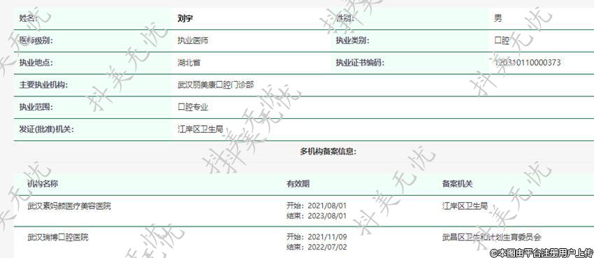 主要執(zhí)業(yè)機(jī)構(gòu):武漢麗美康口腔門診部
