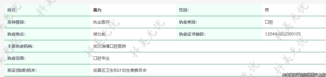 主要執(zhí)業(yè)機構:武漢瑞博口腔醫(yī)院