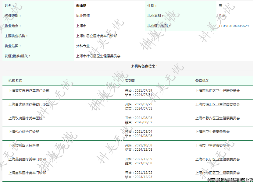 主要執(zhí)業(yè)機構(gòu):上海伯思立醫(yī)療美容門診部
