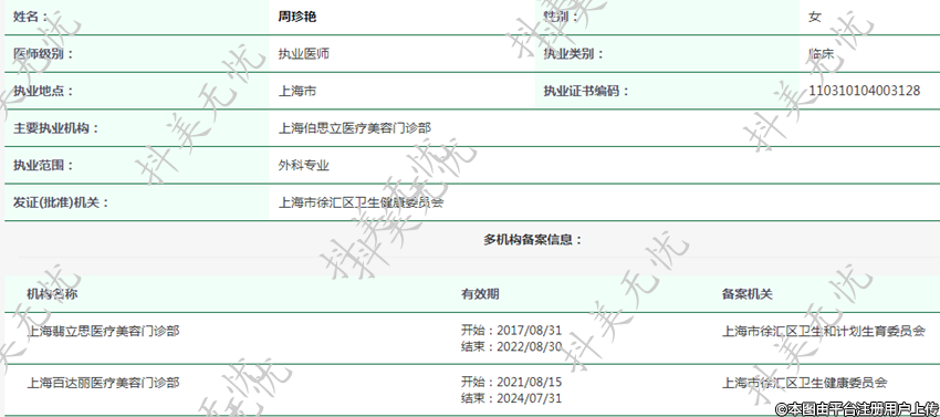 主要執(zhí)業(yè)機(jī)構(gòu):上海伯思立醫(yī)療美容門診部