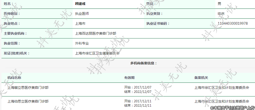 主要執(zhí)業(yè)機(jī)構(gòu):上海百達(dá)麗醫(yī)療美容門診部