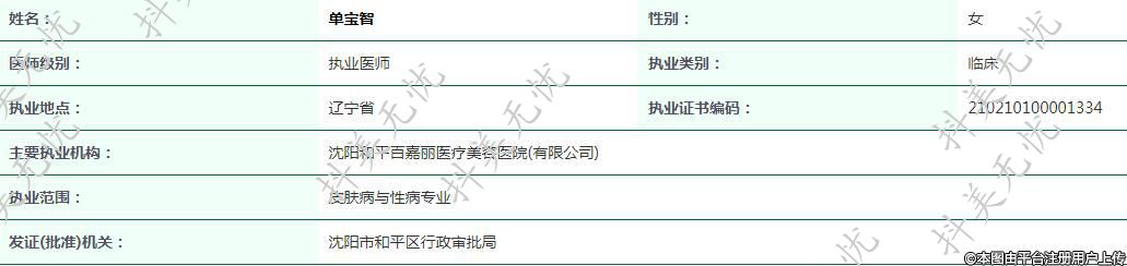 主要執(zhí)業(yè)機構:沈陽和平百嘉麗醫(yī)療美容醫(yī)院(有限公司)