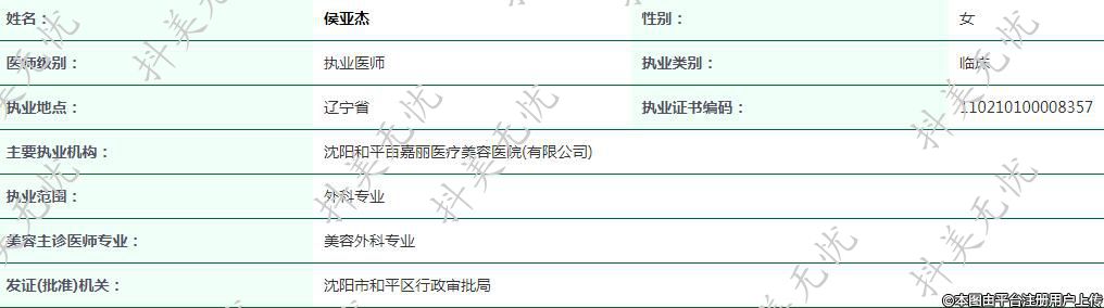 主要執(zhí)業(yè)機(jī)構(gòu):沈陽(yáng)和平百嘉麗醫(yī)療美容醫(yī)院(有限公司)