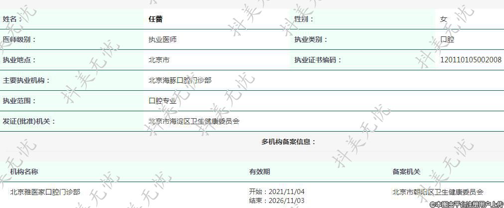 主要執(zhí)業(yè)機(jī)構(gòu):北京海豚口腔門(mén)診部