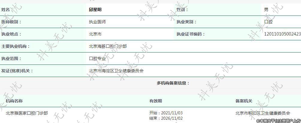 主要執(zhí)業(yè)機(jī)構(gòu):北京海豚口腔門診部