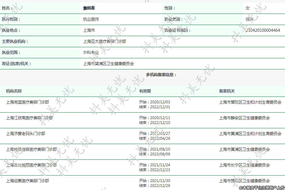 主要執(zhí)業(yè)機構:上海亞太醫(yī)療美容門診部