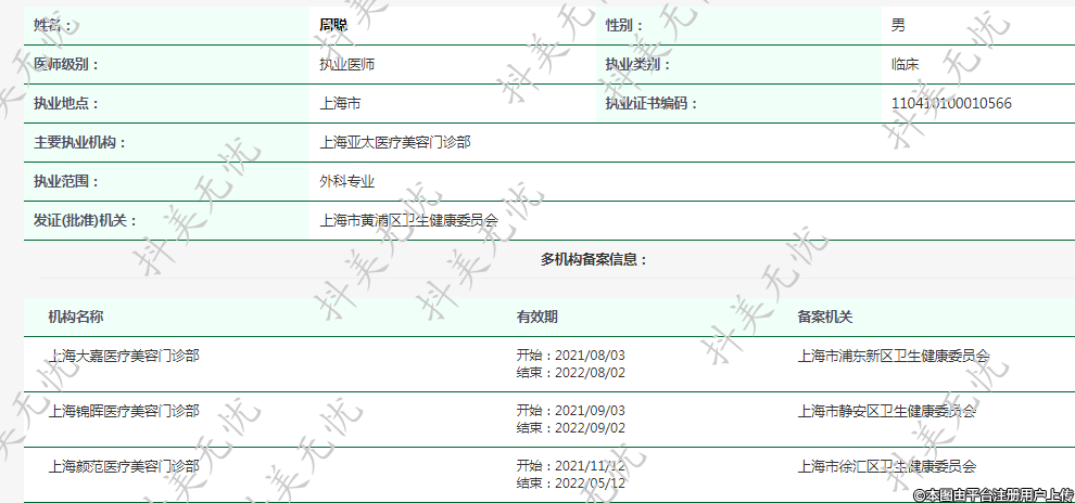 主要執(zhí)業(yè)機(jī)構(gòu):上海亞太醫(yī)療美容門診部