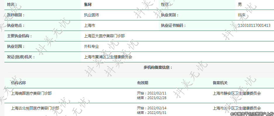 主要執(zhí)業(yè)機(jī)構(gòu):上海亞太醫(yī)療美容門診部
