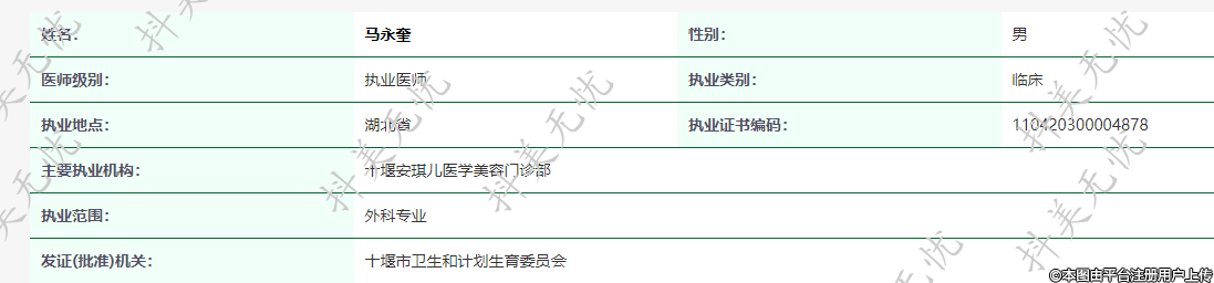 主要執(zhí)業(yè)機構:十堰安琪兒醫(yī)學美容門診部