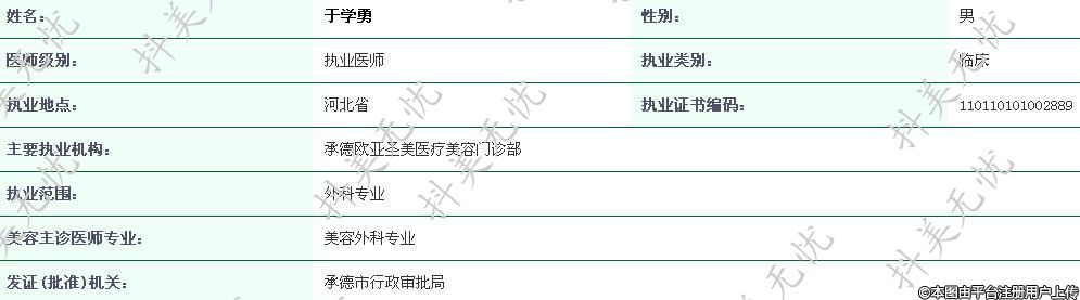 主要執(zhí)業(yè)機(jī)構(gòu):承德歐亞圣美醫(yī)療美容門(mén)診部