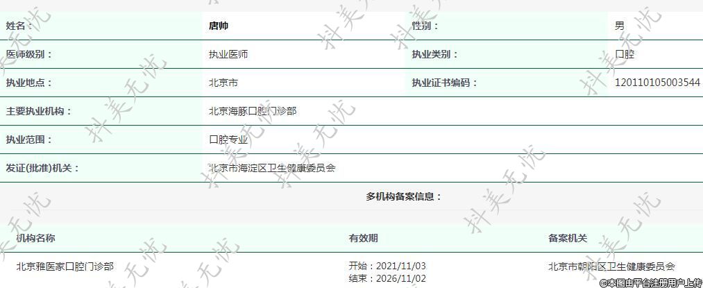 主要執(zhí)業(yè)機構(gòu):北京海豚口腔門診部