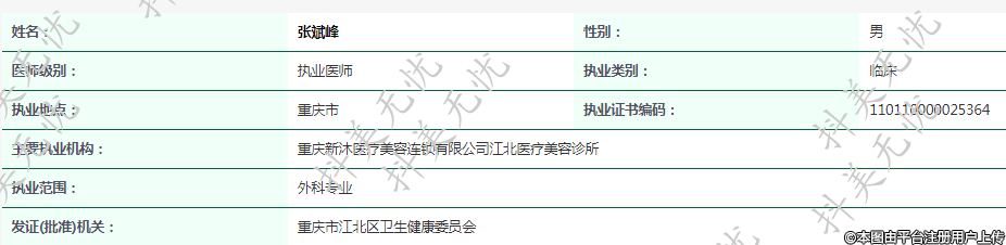 主要執(zhí)業(yè)機(jī)構(gòu):重慶新沐醫(yī)療美容連鎖有限公司江北醫(yī)療美容診所