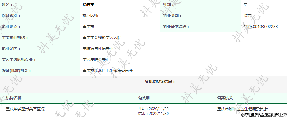 主要執(zhí)業(yè)機(jī)構(gòu):重慶美萊整形美容醫(yī)院