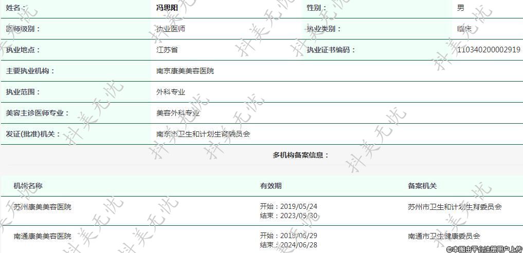 主要執(zhí)業(yè)機構(gòu):南京康美美容醫(yī)院