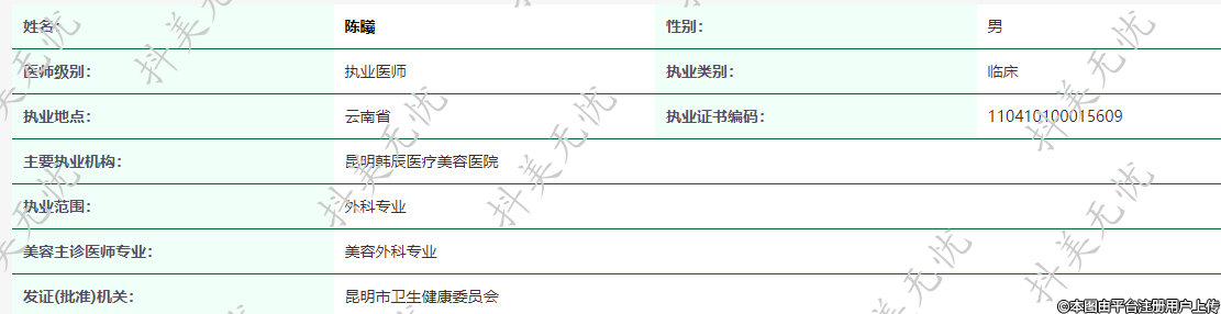 主要執(zhí)業(yè)機構:昆明韓辰醫(yī)療美容醫(yī)院