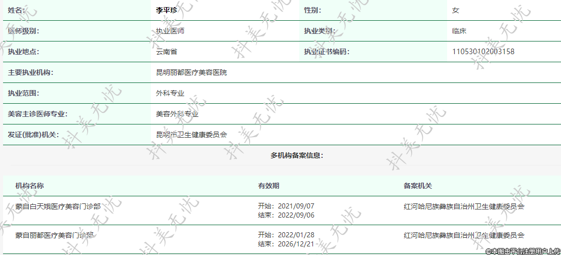 主要執(zhí)業(yè)機構:昆明麗都醫(yī)療美容醫(yī)院
