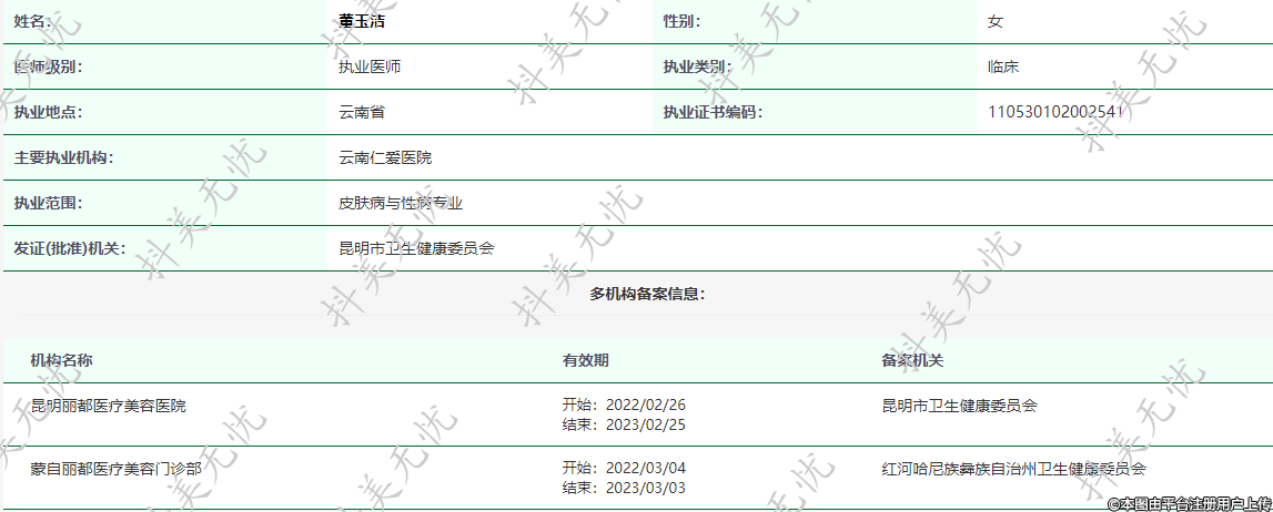 主要執(zhí)業(yè)機構(gòu):昆明麗都醫(yī)療美容醫(yī)院