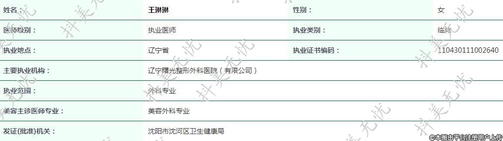 現(xiàn)任遼寧曙光醫(yī)療美容整形外科醫(yī)師。