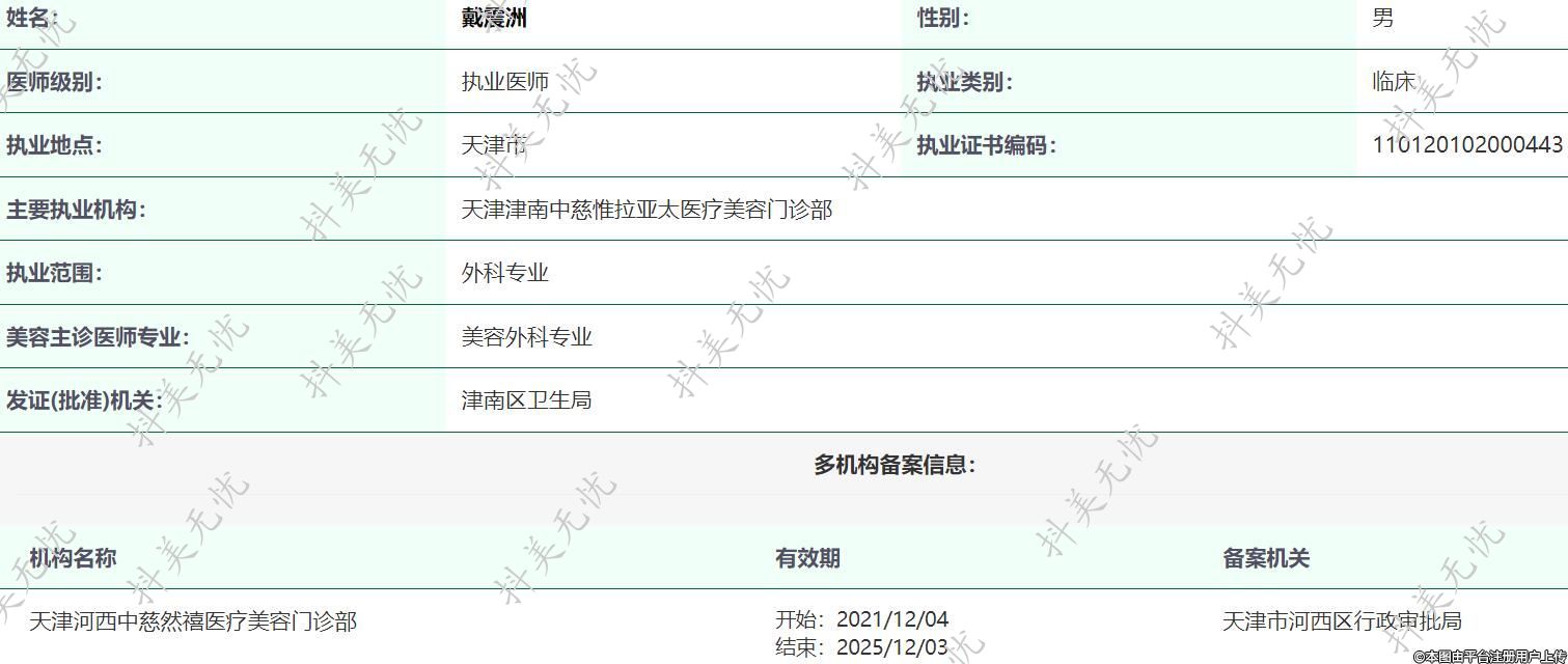 主要執(zhí)業(yè)機(jī)構(gòu):天津津南中慈惟拉亞太醫(yī)療美容門診部