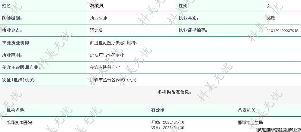邯鄲復康醫(yī)院執(zhí)業(yè)醫(yī)師 -