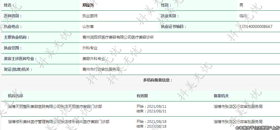 主要執(zhí)業(yè)機(jī)構(gòu):青州潤(rùn)百妍醫(yī)療美容有限公司醫(yī)療美容診所