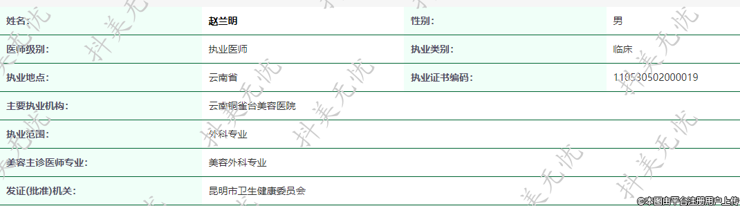 主要執(zhí)業(yè)機(jī)構(gòu):云南銅雀臺(tái)美容醫(yī)院