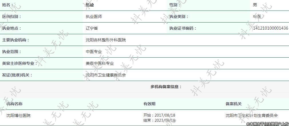 主要執(zhí)業(yè)機構:沈陽杏林整形外科醫(yī)院