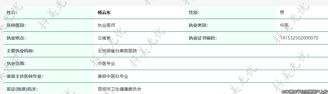 主要執(zhí)業(yè)機(jī)構(gòu):云南銅雀臺(tái)美容醫(yī)院