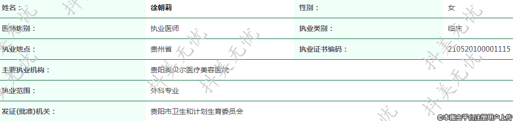 現(xiàn)任貴陽美貝爾醫(yī)療美容醫(yī)院執(zhí)業(yè)醫(yī)師