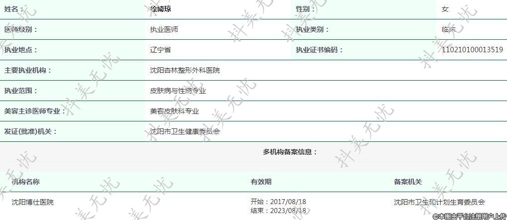 主要執(zhí)業(yè)機構:沈陽杏林整形外科醫(yī)院