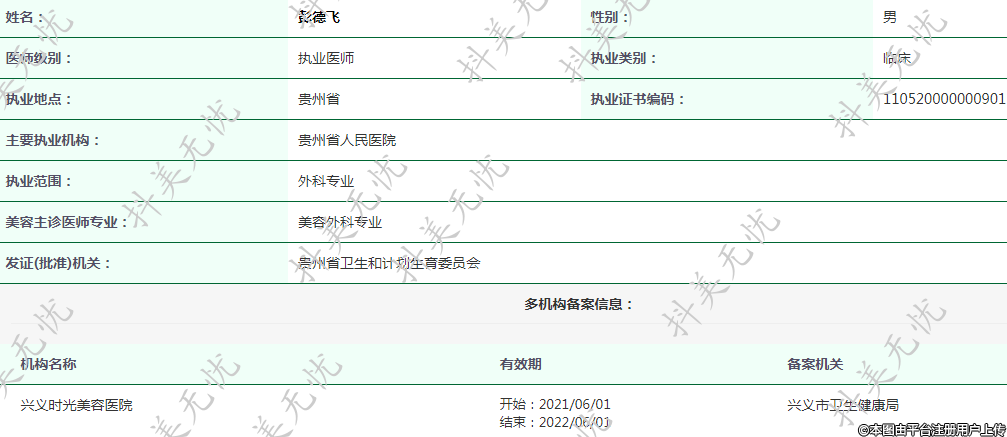 現(xiàn)任興義時(shí)光美容醫(yī)院執(zhí)業(yè)醫(yī)師 -