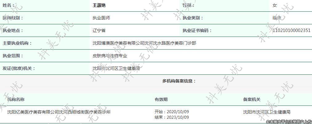主要執(zhí)業(yè)機構(gòu):沈陽博澳醫(yī)療美容有限公司沈河沈水路醫(yī)療美容門診部